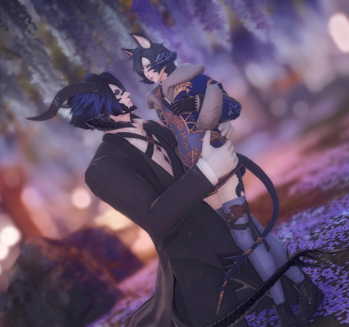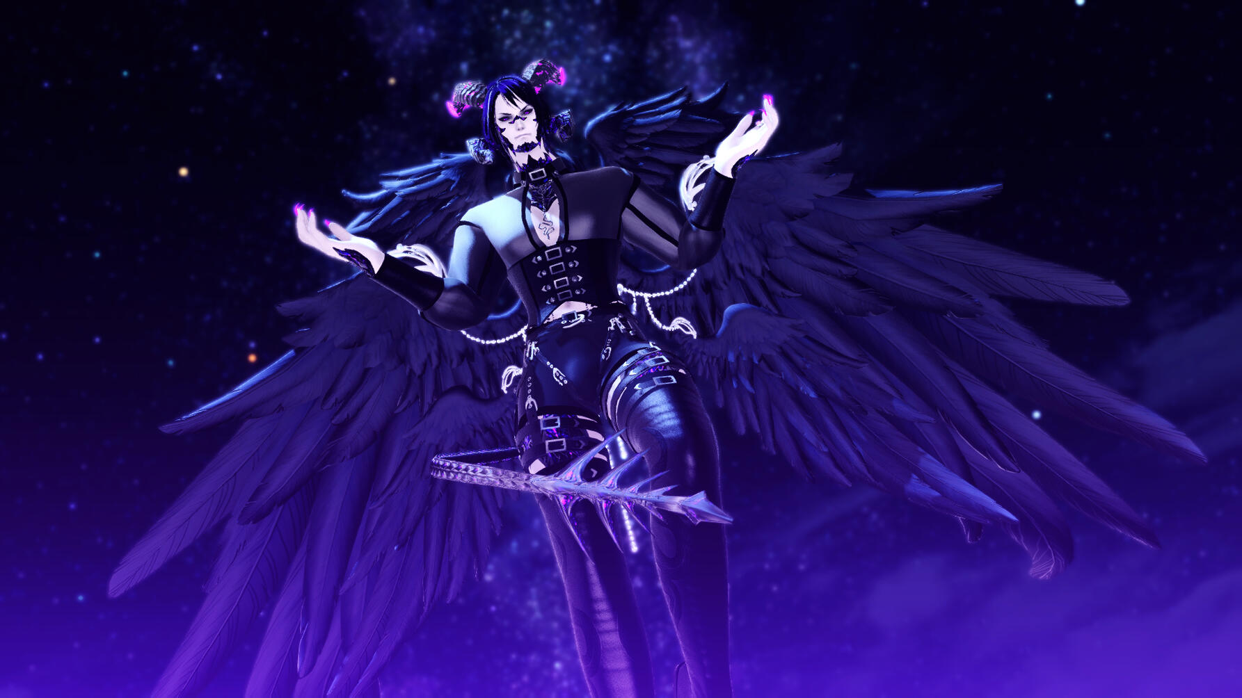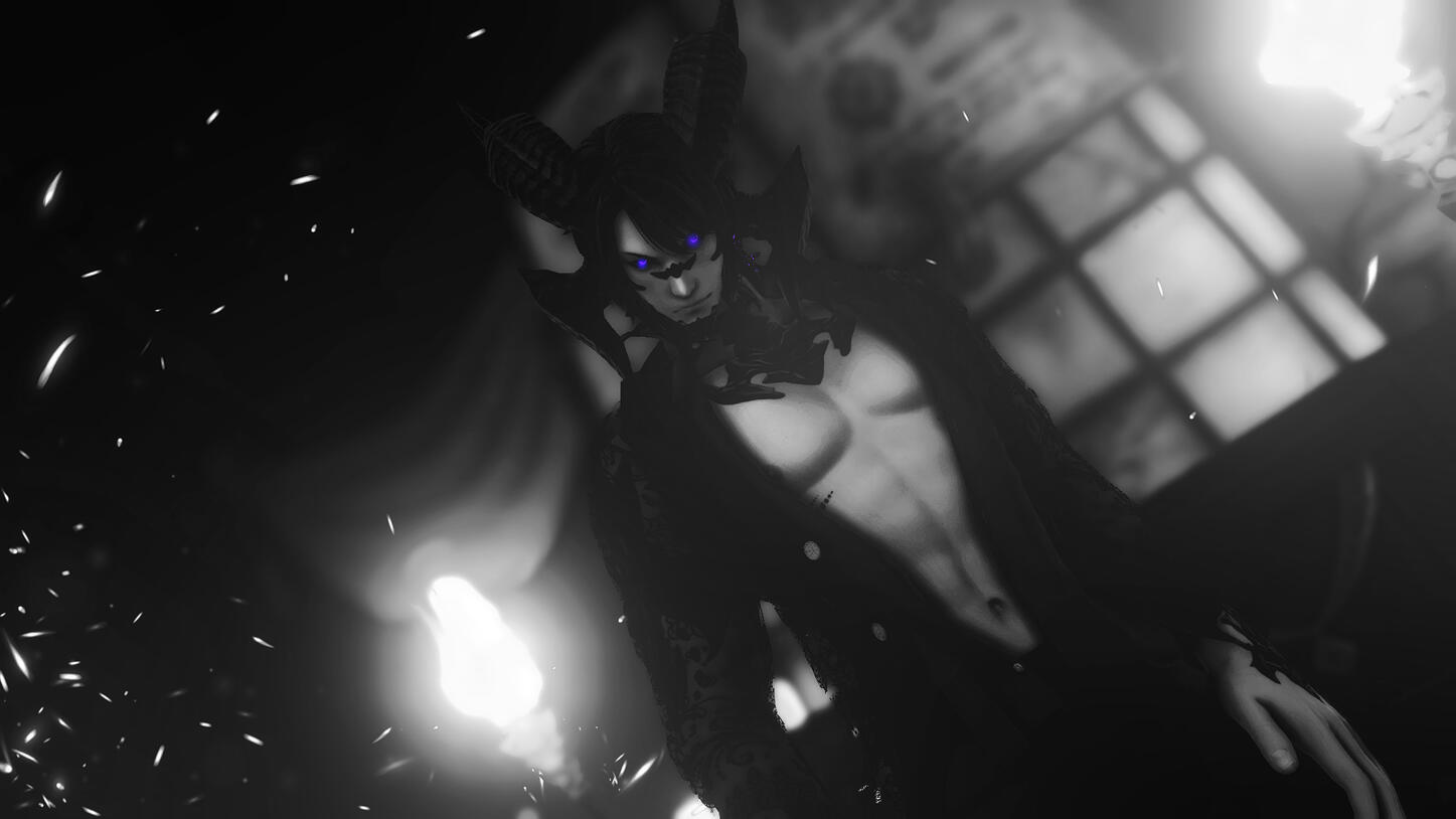 Regaled by the stories of other adventurers in the pubs and markets, Andreas decided that he would follow suit. Nothing was left for him at home save for overly affectionate parents, annoying priests who blamed his 'sinful' actions for any tragedy befalling their people, and those he'd already broken the hearts of. Not a single goodbye was given before the lonesome elf set out for the road with nothing but the clothes on his back and a sword in hand. The only training Andreas had ever received was with a hatchet and scythe, but such weapons left his body toned and muscular. Where he'd failed academics out of boredom with the work, the elf excelled with the blade early on. What was the difference between chopping off a branch or slicing wheat to doing the same to a monster's body and limbs?Now a dashing young adult, Andreas fell in with a group of adventurers that acted more like mercenaries. Like him, they did not take up the title for the sake of helping the realm. Slaying monsters and rescuing loved ones from beast tribes came at a cost: booze, gil, clothes, and for Andreas: infatuated townsfolk to sleep with. Those the elezen favored the most would get more of his time. Perhaps he might even stay several moons while the rest of the band moved on. Then talks of marriage and children would arise, the latter often due to unexpected pregnancy. By the next sunrise, Andreas would vanish without a trace. By the time angry, betrayed townsfolk hunted him down, the adventurer would already be malms away.Just as so many adventurers did for their own reasons, Andreas and his band answered the call for aid from the Bringer of Light and their allies. But all were ill-prepared for the battle that led the Thirteenth to become the Void. Andreas was one of millions to face a fate worse than death during the Flood of Darkness. His aether became overly aspected to umbral lightning. Such an imbalance caused his very form to warp and distort. Bones broke and flesh sundered as his very soul changed.The creature left in the wake of the Flood of Darkness was no longer Andreas, but a voidsent driven by its hunger for aether and controlled by its foremost vice: lust. He was an incubus. The dark, shattered remains of the Thirteenth fell into chaos as every voidsent fought for power and aether uniformly. Yet the elezen's quick wits were perhaps the only part of him unchanged. While others became mindless beasts, Andreas turned into a cold and calculated killer that made the former easy prey. Still, as millenia passed by and more voidsent died, the incubus sought opportunities to cross into other worlds for fresh aether.Such 'outings' were short-lived. Given his power, calling Andreas forth and offering a strong enough vessel were challenges few could overcome. Texts quickly began recording how the incubus would lure summoners out from the safe circles created for the ritual only to murder them. Over time, they shortened his eloquent and lengthy name to 'Andras'. Massacre after massacre unfolded, and the aether was all his. So powerful was Andras that his summoning was often forbidden because of the associated risks. The rare successes saw previously peaceful leaders set their armies upon each other in brutal bloodshed for reasons unknown. Receivers of the summoners' ire were found mutilated inside and out in their beds - such scenes so grotesque that few could stomach them. Violence and lust: the sole will of Andras... until a young Au Ra called him forth on the brink of death.
