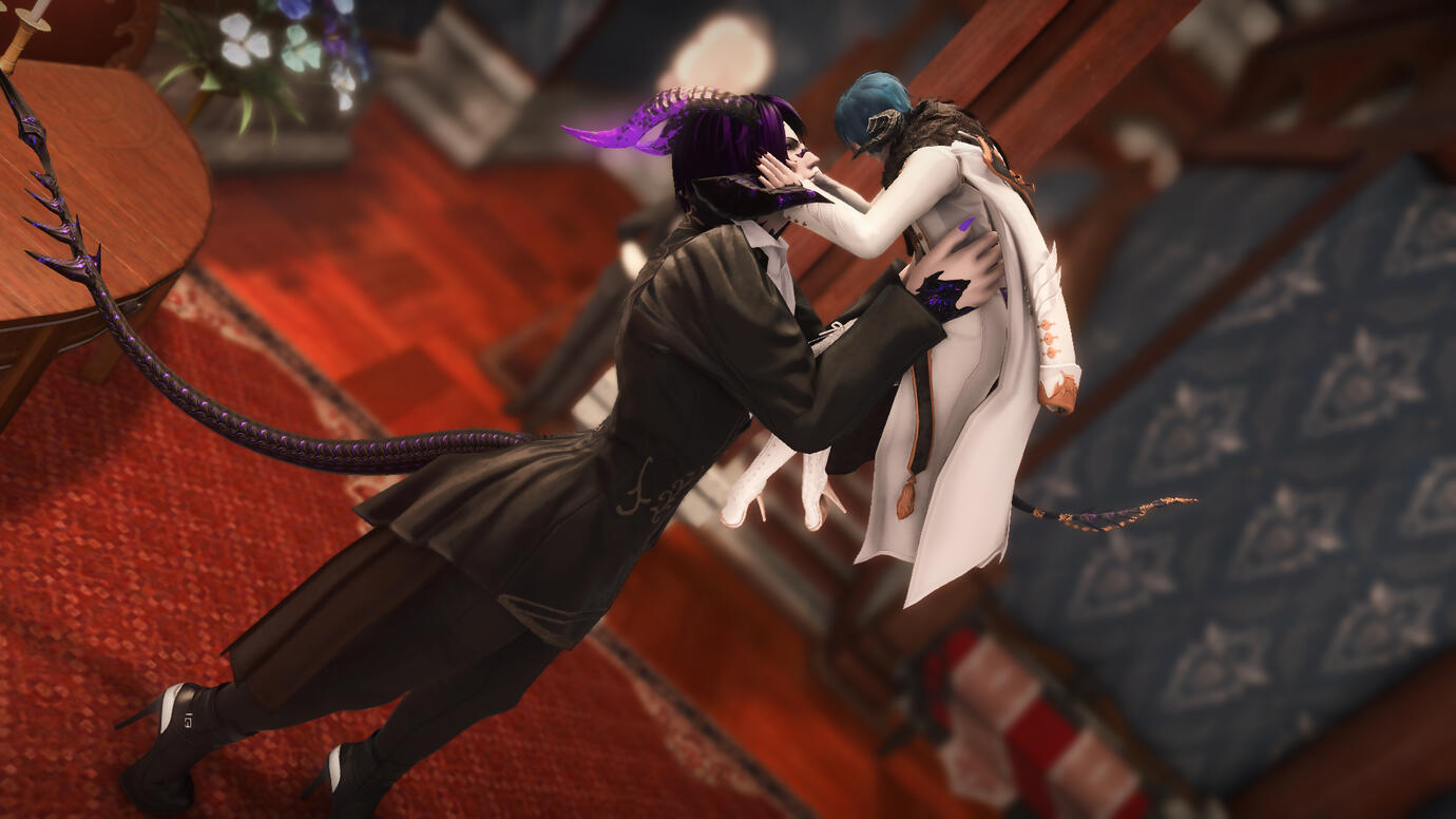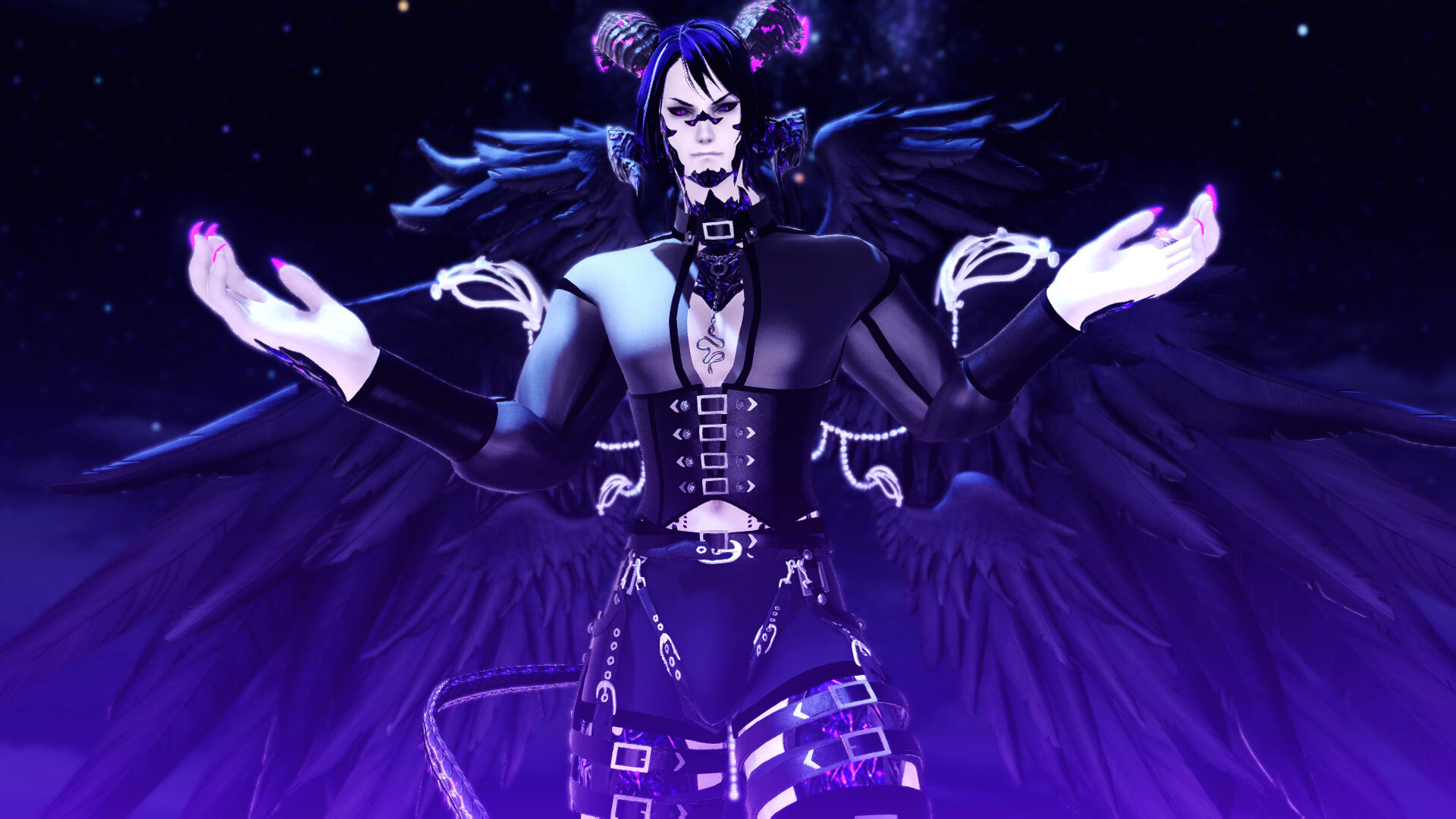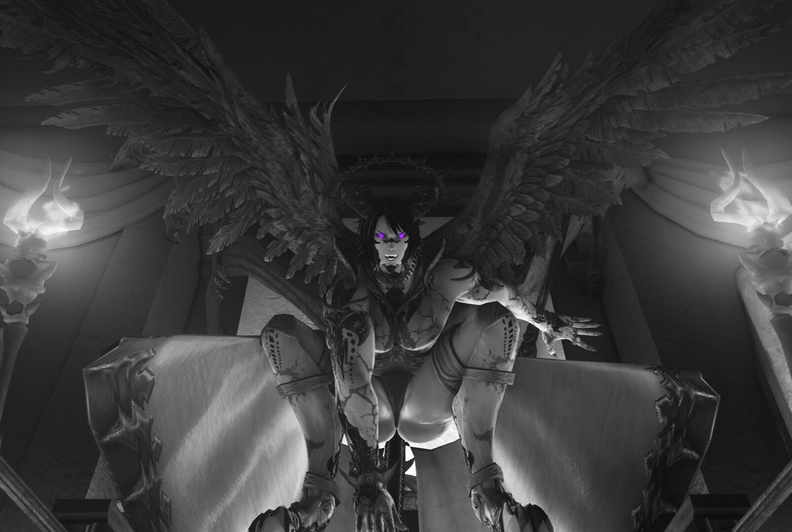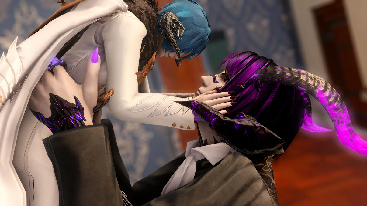 Regaled by the stories of other adventurers in the pubs and markets, Andreas decided that he would follow suit. Nothing was left for him at home save for overly affectionate parents, annoying priests who blamed his 'sinful' actions for any tragedy befalling their people, and those he'd already broken the hearts of. Not a single goodbye was given before the lonesome elf set out for the road with nothing but the clothes on his back and a sword in hand. The only training Andreas had ever received was with a hatchet and scythe, but such weapons left his body toned and muscular. Where he'd failed academics out of boredom with the work, the elf excelled with the blade early on. What was the difference between chopping off a branch or slicing wheat to doing the same to a monster's body and limbs?Now a dashing young adult, Andreas fell in with a group of adventurers that acted more like mercenaries. Like him, they did not take up the title for the sake of helping the realm. Slaying monsters and rescuing loved ones from beast tribes came at a cost: booze, gil, clothes, and for Andreas: infatuated townsfolk to sleep with. Those the elezen favored the most would get more of his time. Perhaps he might even stay several moons while the rest of the band moved on. Then talks of marriage and children would arise, the latter often due to unexpected pregnancy. By the next sunrise, Andreas would vanish without a trace. By the time angry, betrayed townsfolk hunted him down, the adventurer would already be malms away.Just as so many adventurers did for their own reasons, Andreas and his band answered the call for aid from the Bringer of Light and their allies. But all were ill-prepared for the battle that led the Thirteenth to become the Void. Andreas was one of millions to face a fate worse than death during the Flood of Darkness. His aether became overly aspected to umbral lightning. Such an imbalance caused his very form to warp and distort. Bones broke and flesh sundered as his very soul changed.The creature left in the wake of the Flood of Darkness was no longer Andreas, but a voidsent driven by its hunger for aether and controlled by its foremost vice: lust. He was an incubus. The dark, shattered remains of the Thirteenth fell into chaos as every voidsent fought for power and aether uniformly. Yet the elezen's quick wits were perhaps the only part of him unchanged. While others became mindless beasts, Andreas turned into a cold and calculated killer that made the former easy prey. Still, as millenia passed by and more voidsent died, the incubus sought opportunities to cross into other worlds for fresh aether.Such 'outings' were short-lived. Given his power, calling Andreas forth and offering a strong enough vessel were challenges few could overcome. Texts quickly began recording how the incubus would lure summoners out from the safe circles created for the ritual only to murder them. Over time, they shortened his eloquent and lengthy name to 'Andras'. Massacre after massacre unfolded, and the aether was all his. So powerful was Andras that his summoning was often forbidden because of the associated risks. The rare successes saw previously peaceful leaders set their armies upon each other in brutal bloodshed for reasons unknown. Receivers of the summoners' ire were found mutilated inside and out in their beds - such scenes so grotesque that few could stomach them. Violence and lust: the sole will of Andras... until a young Au Ra called him forth on the brink of death.